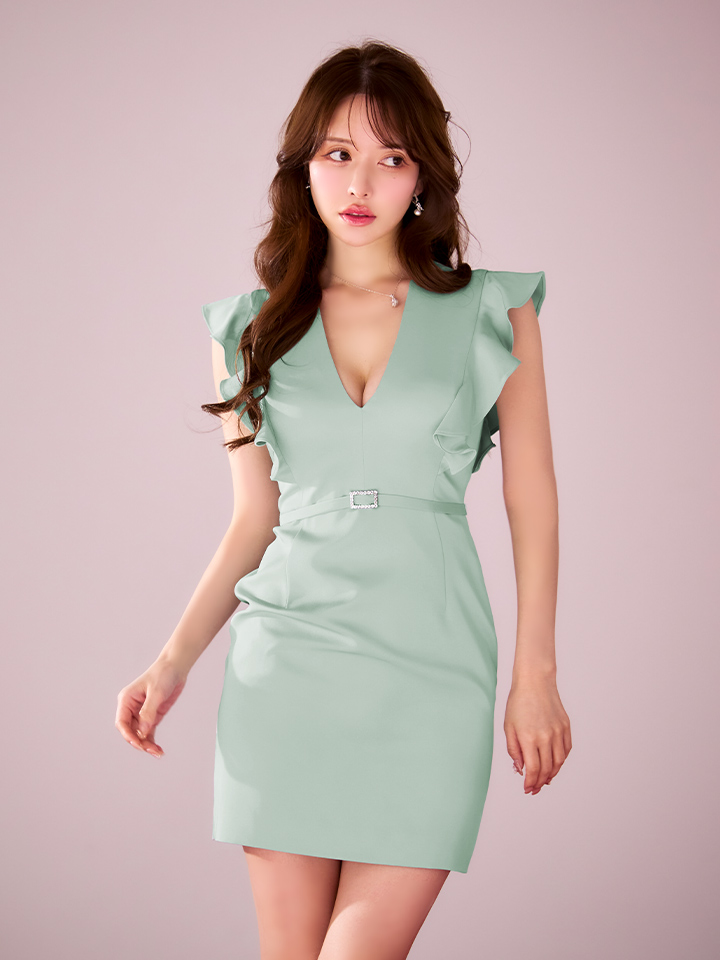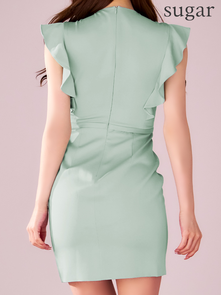 XS-Lサイズあり【ERUKEI エルケイ】シンプル/ ウエストマーク/ Vネック/ ショルダーフリル/ ワンカラー/ タイト/ ミニドレス/ キャバドレス[OF2] [LKE25172-W-S2510]