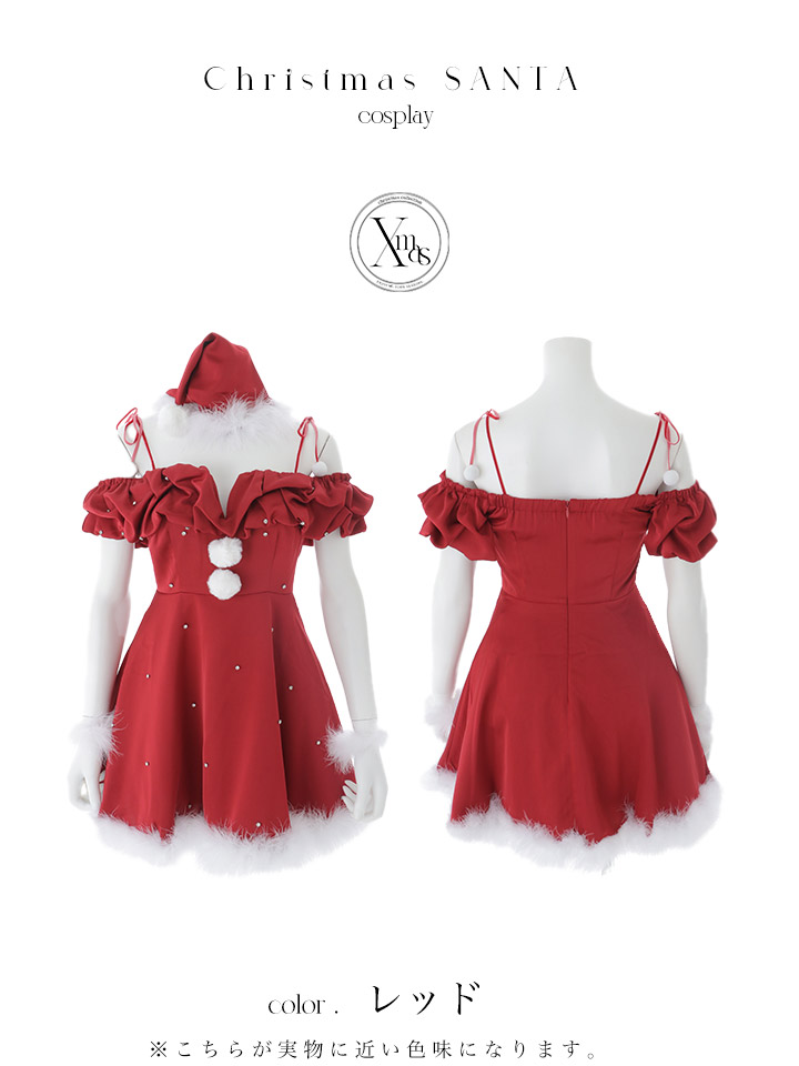 【ノベルティ対象】【即日発送】【送料無料!】【サンタ】リボンキャミオフショルフリルサンタコスプレ【コスプレ4点セット】【XS-Lサイズ/2カラー】[OF03] [SS-152-YN-dzw-R-25YM]