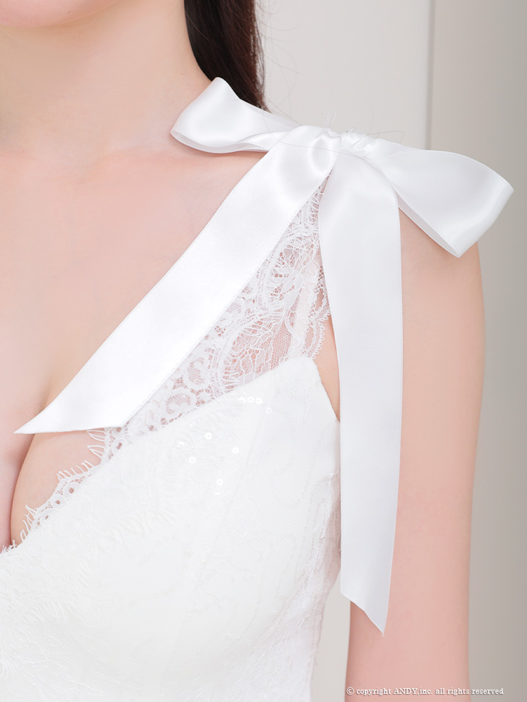 ショルダーサテンリボンがお顔周りを華やかに演出し、