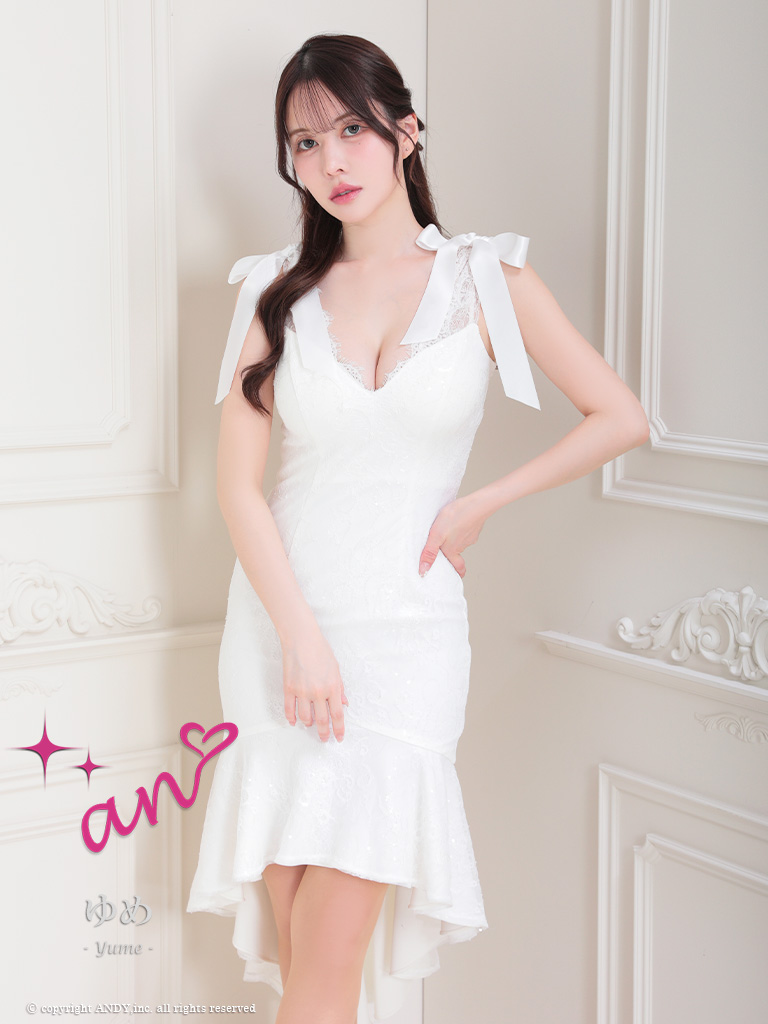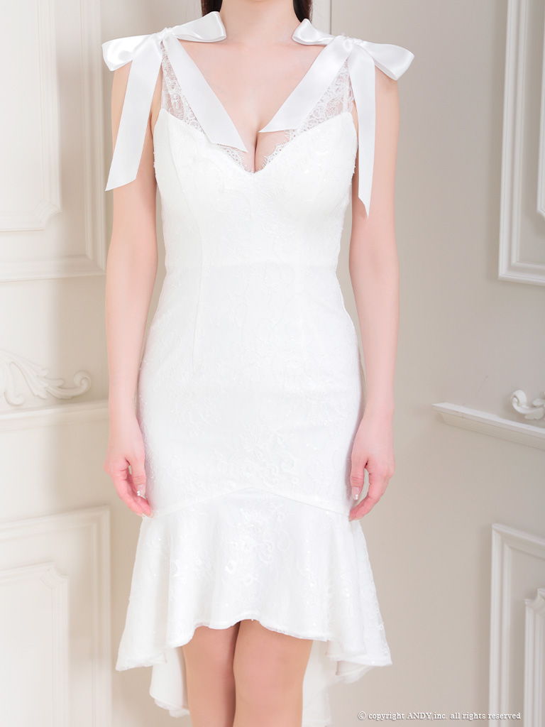 【an /アン】総レース/ ショルダーリボン/ テールカット/ マーメイド/ ノースリーブ/ ミディアムドレス/ キャバドレス[OF05] [AOC3723-BxBE-2510]