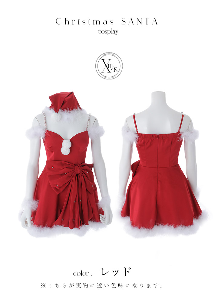 【即日発送】【サンタ】サイドリボンビジューオフショルサンタコスプレ【コスプレ4点セット】【XS-Lサイズ/1カラー】[OF04] [SS-169-YN-dzw-R-25MY]
