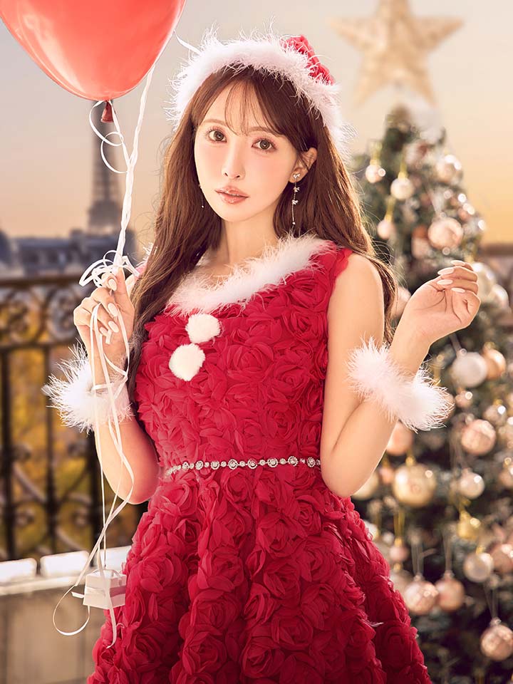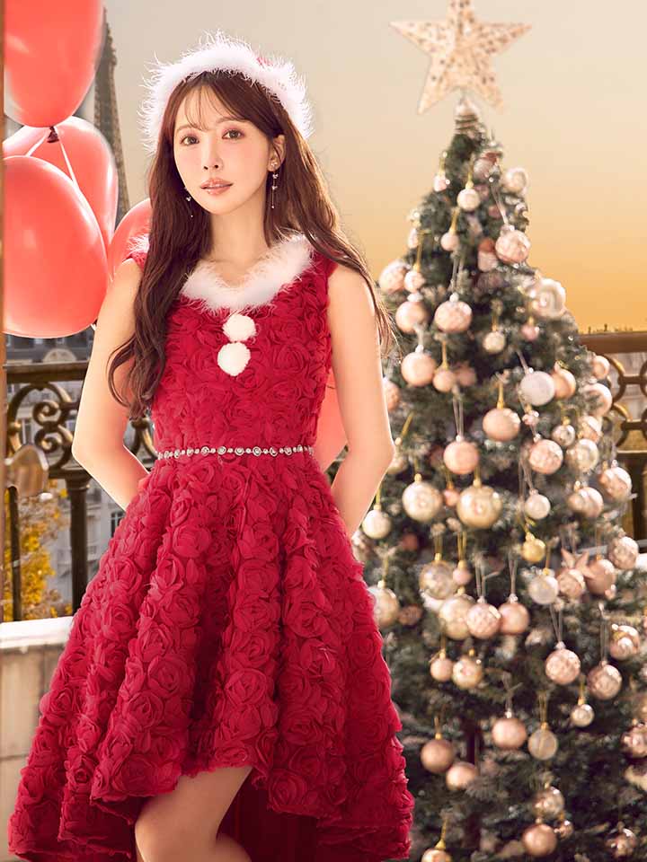 #フレア #ワンピース #ノースリーブ #ショートインスカート #立体ローズ #クリスマス #パーティ #サンタコス #サンタさん