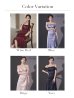 気になる二の腕をカバーしつつ、デコルテをスッキリ綺麗に魅せるオフショルデザインもポイントです♪