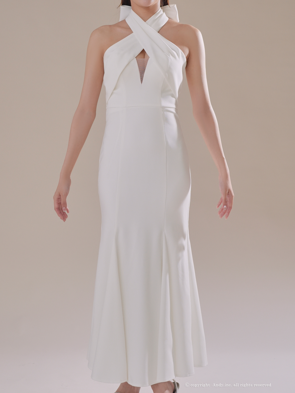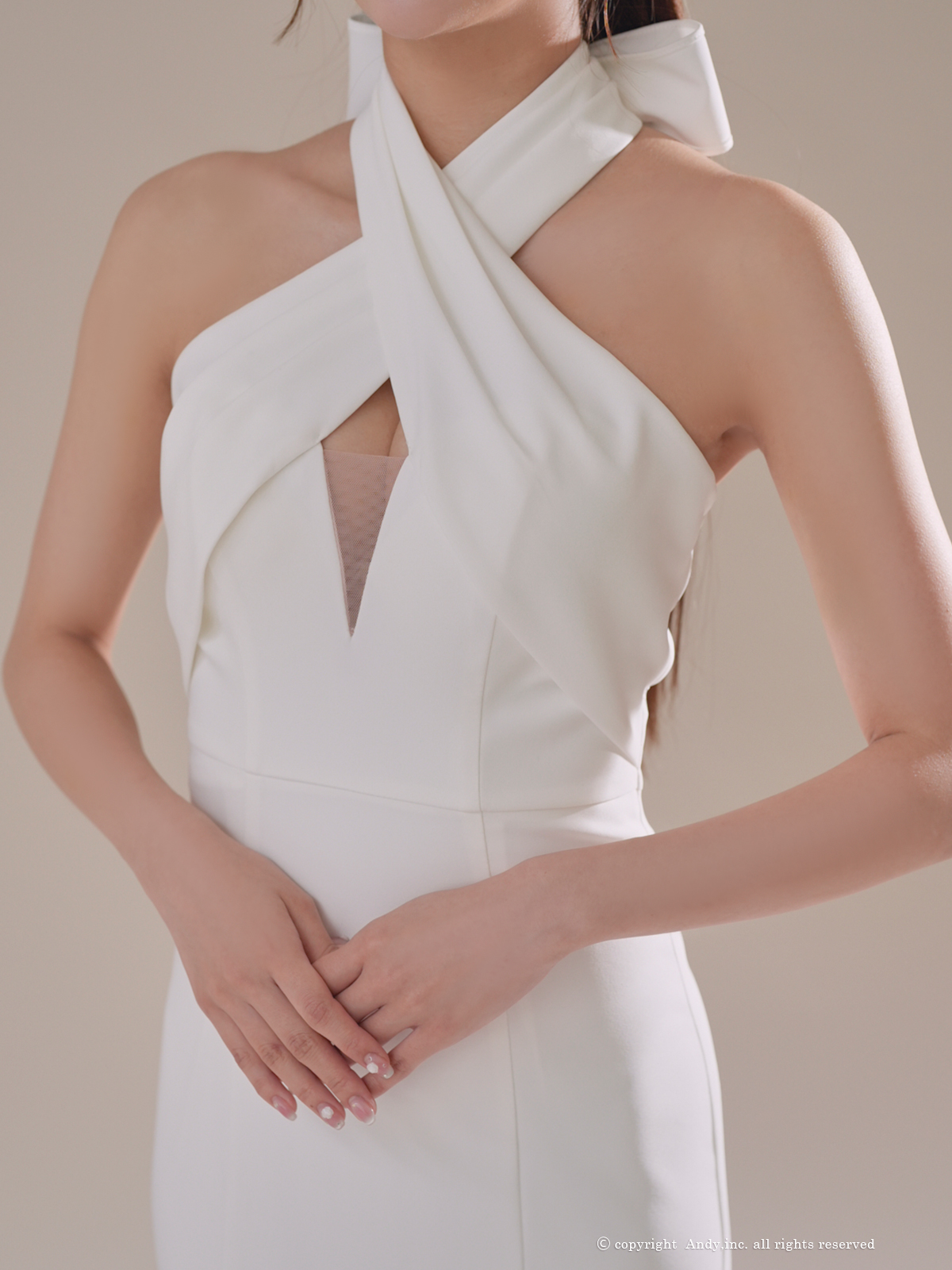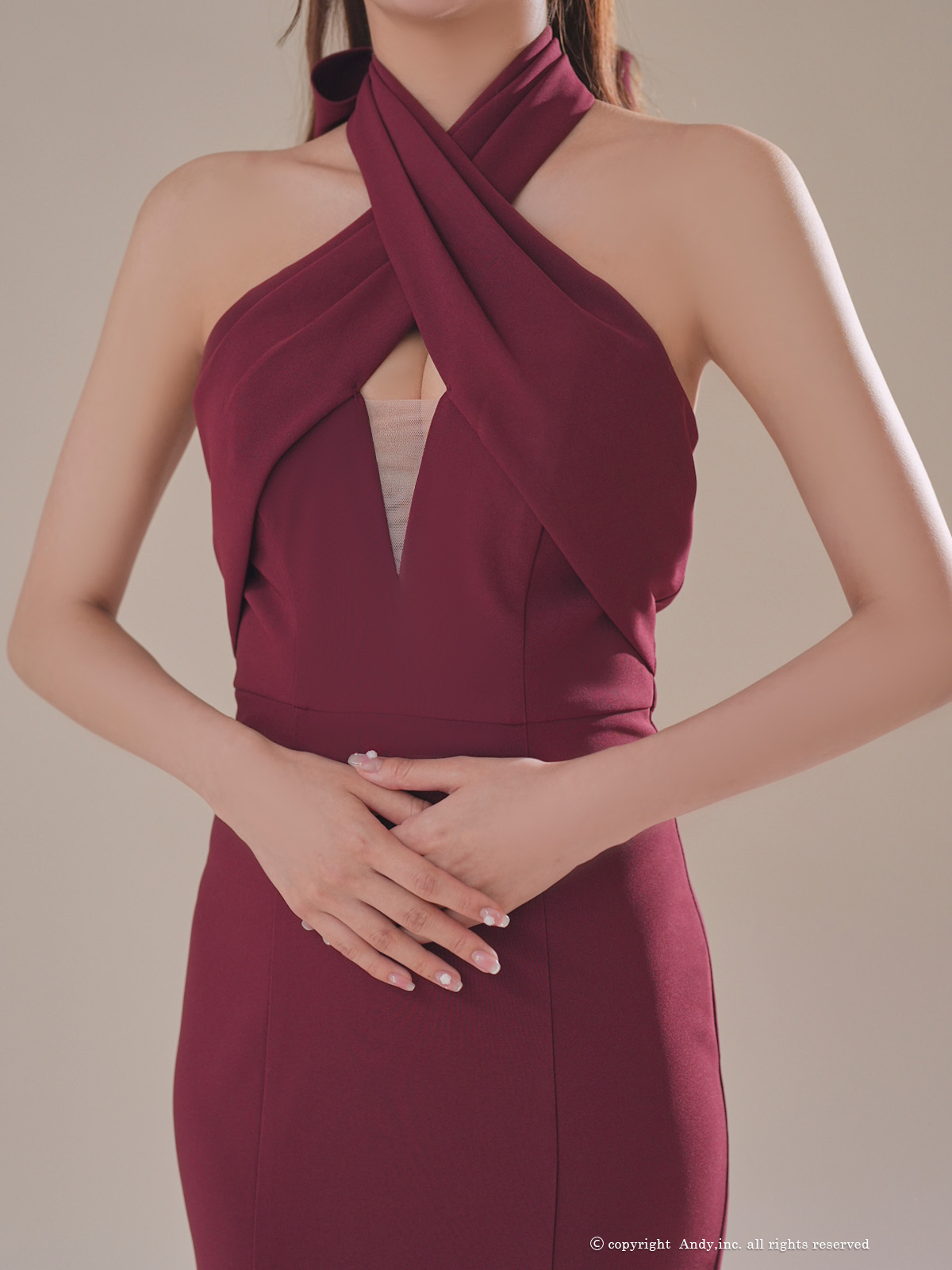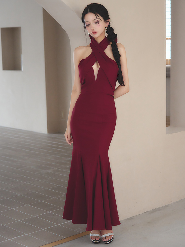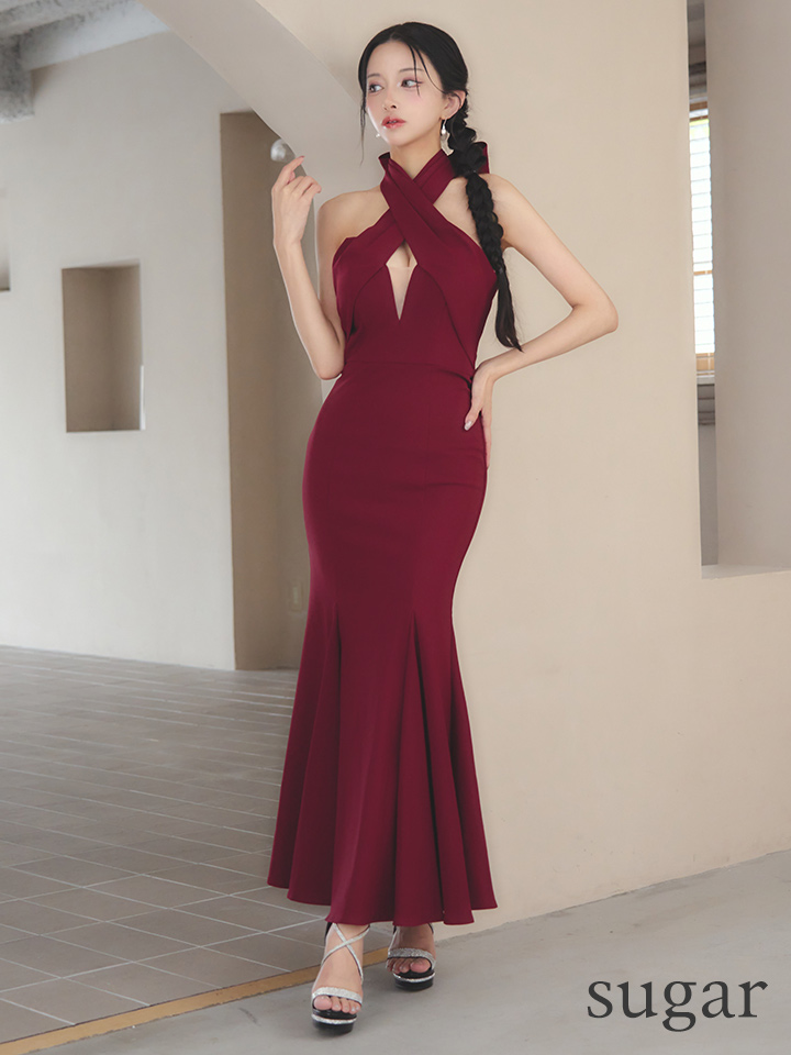 クロスホルターxバストシアーの組み合わせが大人の色気醸し出すストレッチロングドレス♡