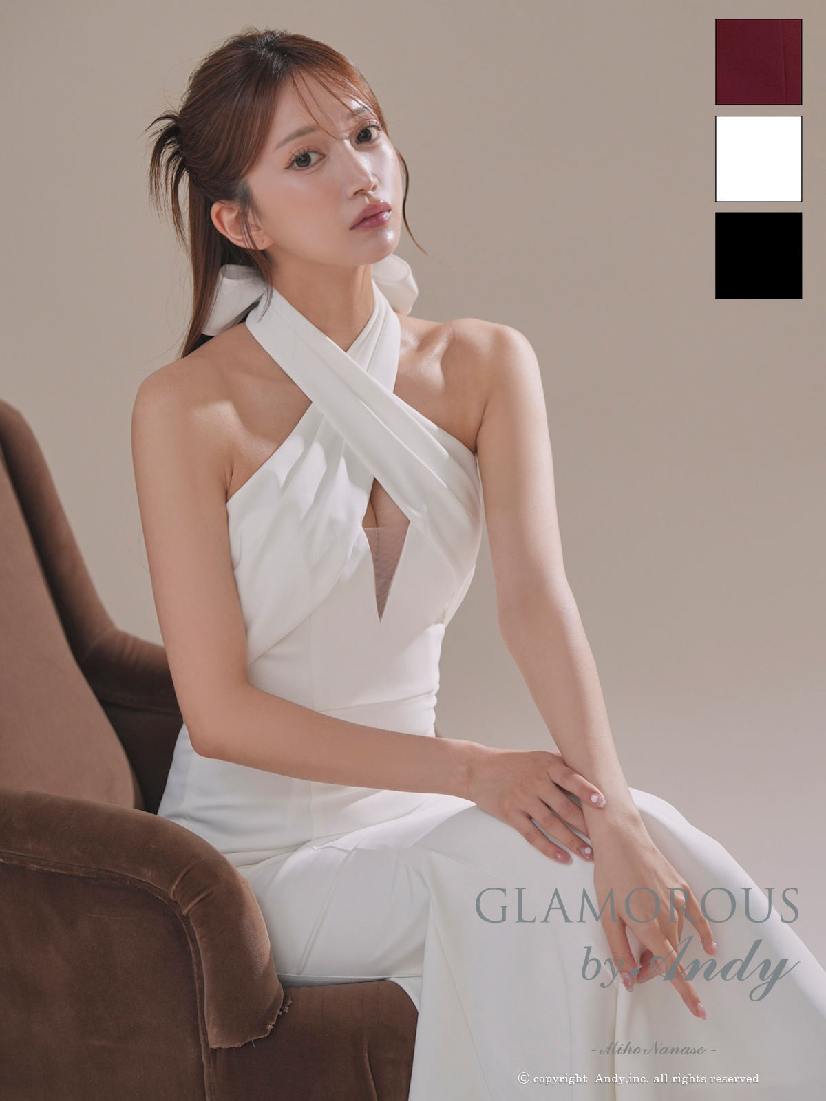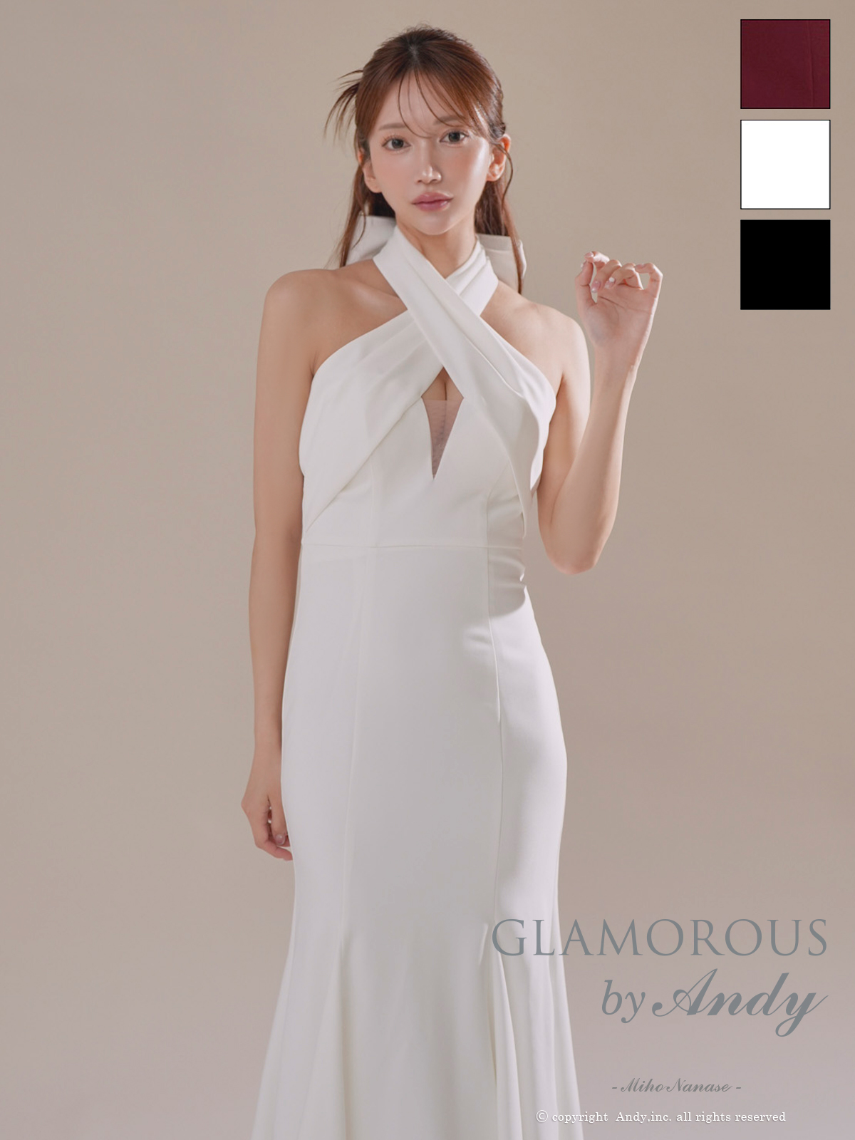 【Andy GLAMOROUS/アンディグラマラス】クロスホルター/ バストシアー/ ストレッチ/ シンプル/ マーメイド/ ロングドレス/ キャバドレス long[OF05] [GMS-V882-B-S251010]