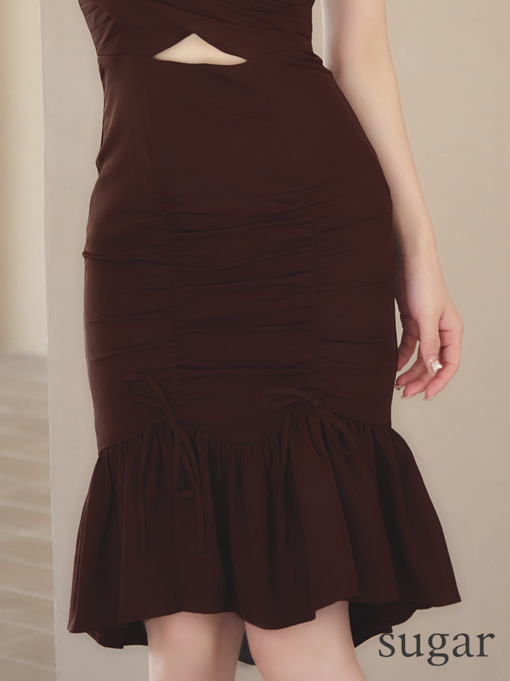 クロスデザインxマーメイドシルエットが女性らしいボディラインを引き立てるミディアムドレス♡