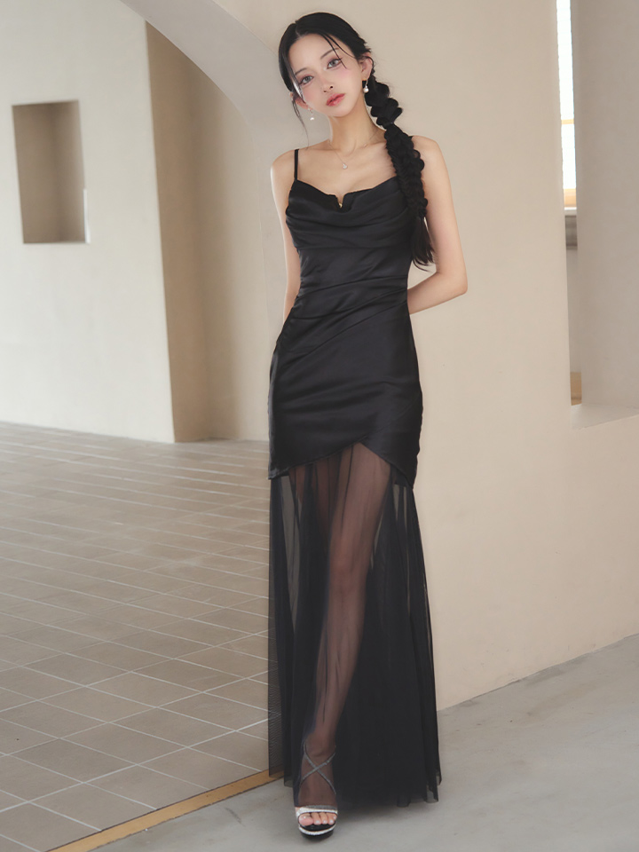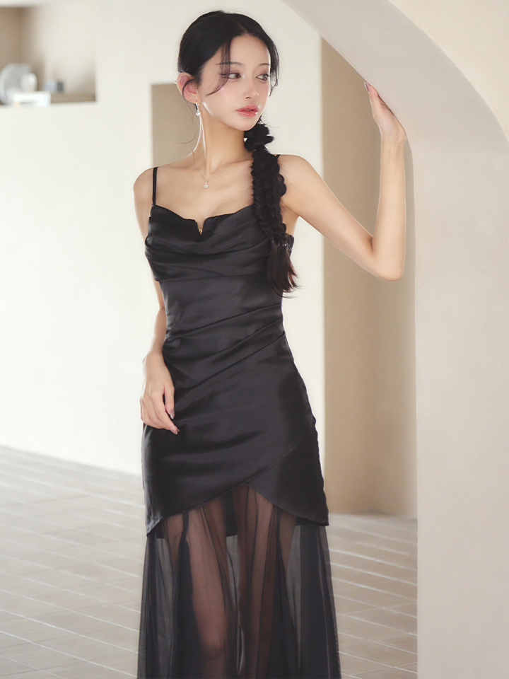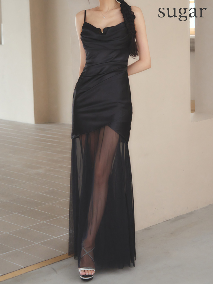 【予約商品/10月中旬発送予定】【ANDY/アンディ】シースルー/ バストジップ/ ドレープ/ ウエストタック/ キャミ/ ロングドレス/ キャバドレス[OF05] [ON2995-B-S251010]