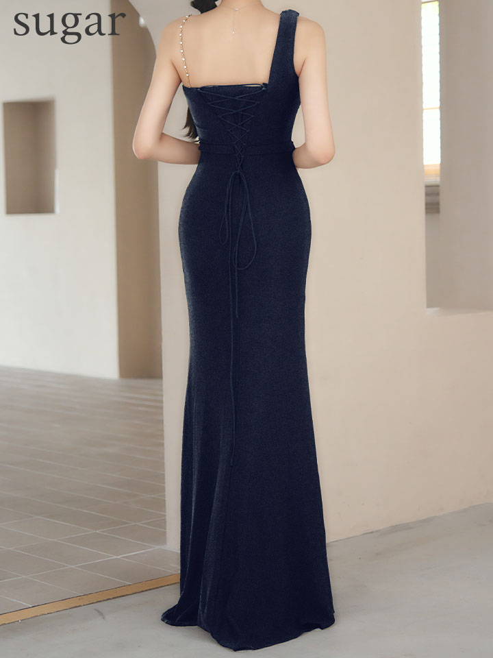 上品に煌めくラメニットがラグジュアリーなタイトロングドレス♡