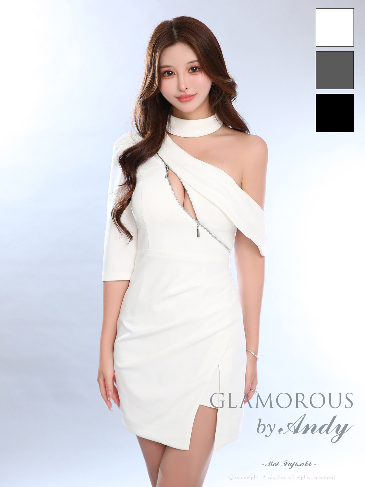 XSサイズあり【Andy GLAMOROUS/アンディグラマラス】チョーカーデザイン/ ワンショルダー/ 半袖/ 袖あり/ フロントジップ/ ストレッチ/ タイト/ ミニドレス/ キャバドレス[OF05] [GMS-V890-DGY-2510]