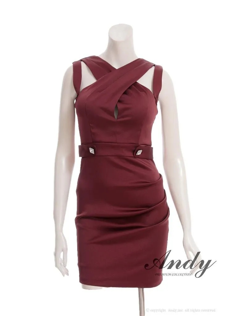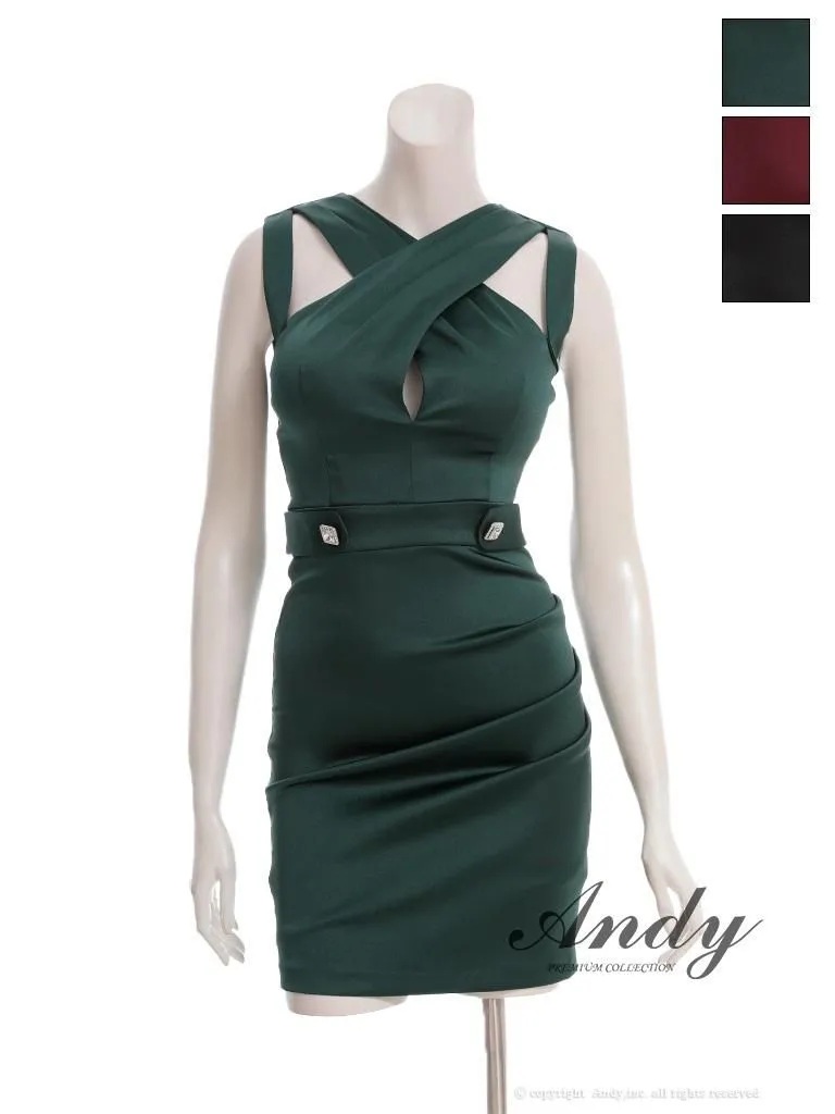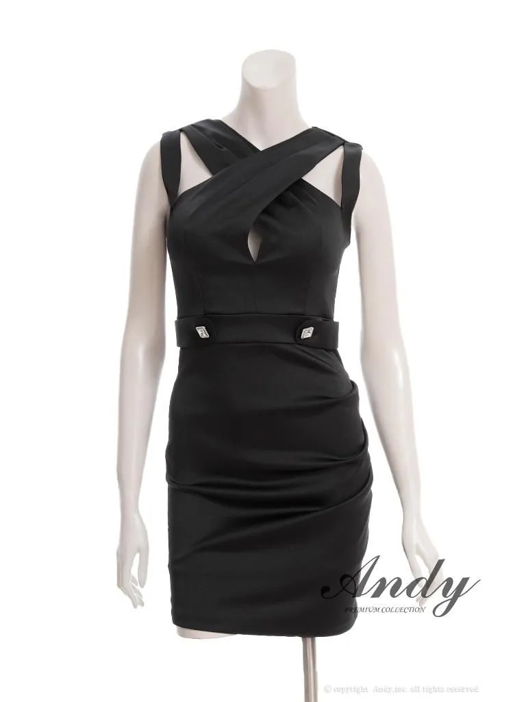 XSサイズあり【ANDY/アンディ】クロスネック/ カットアウト/ タック/ ビジューボタン/ ノースリーブ/ タイト/ ミニドレス/ キャバドレス[OF05] [OK3013-B-2510]