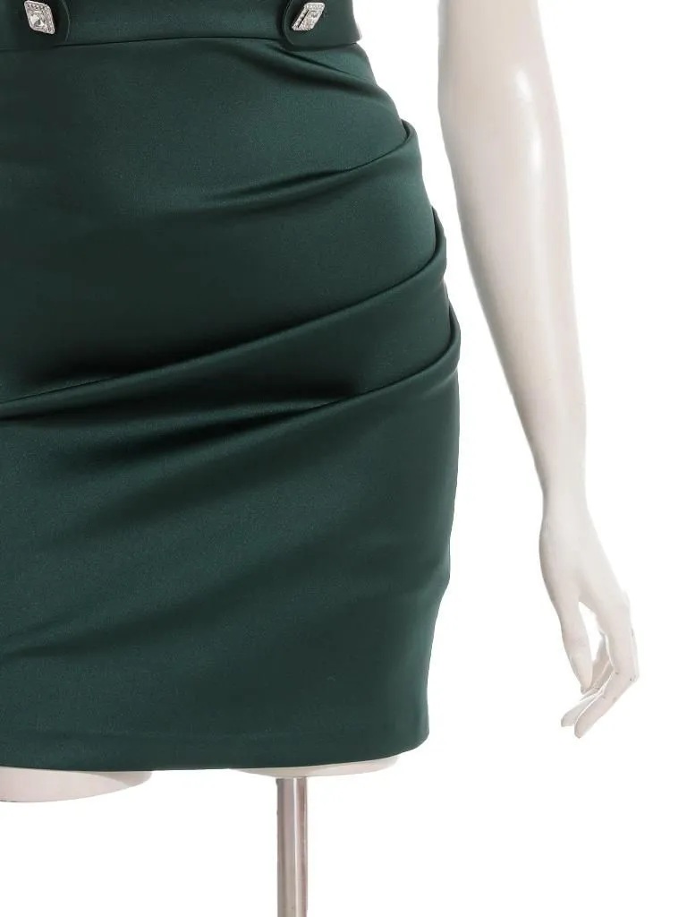 スクエアビジューがアクセントになり、セクシーさも上品さも叶える一着です。