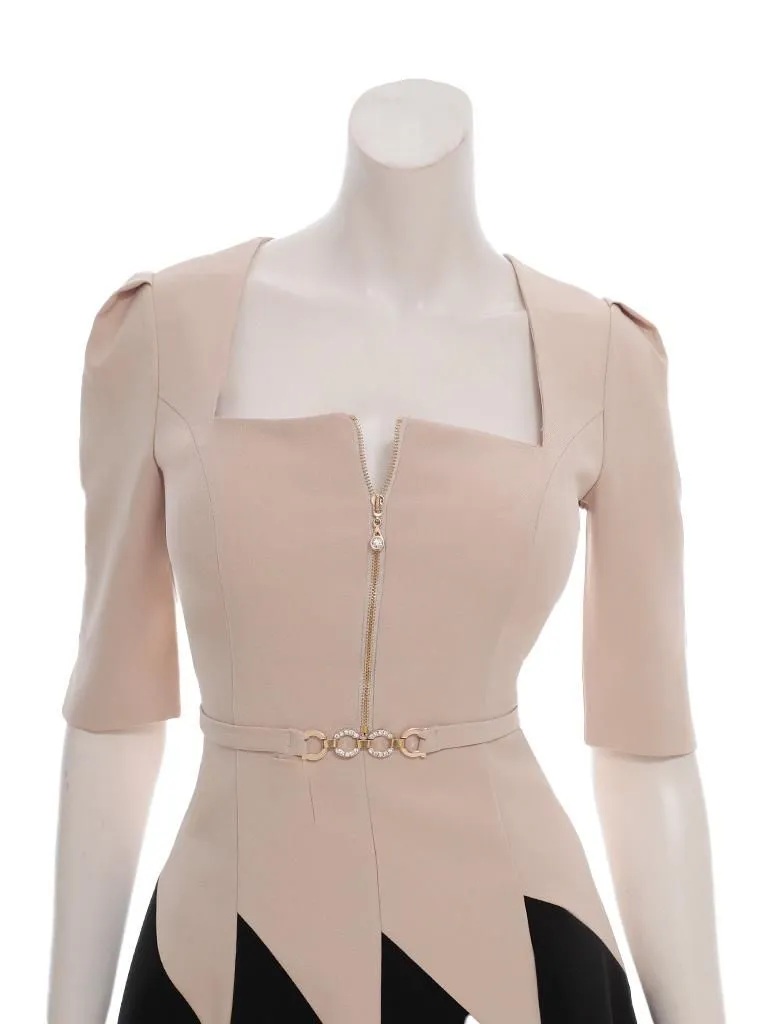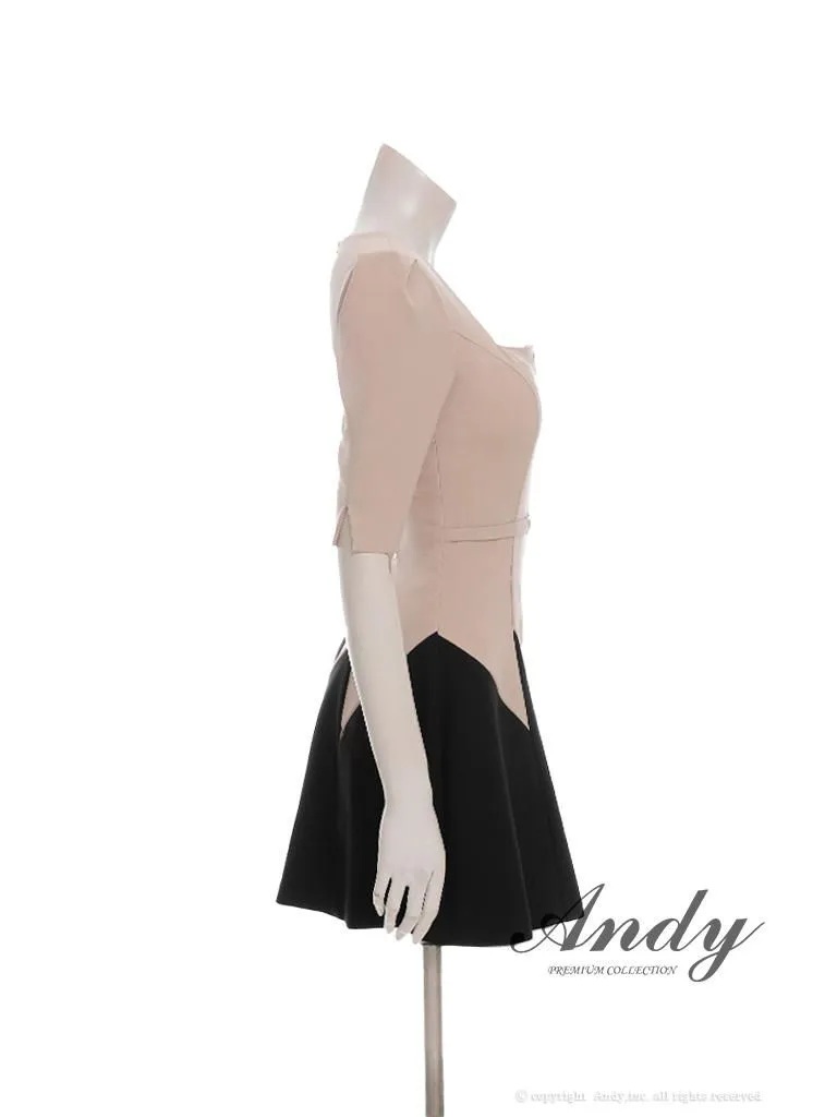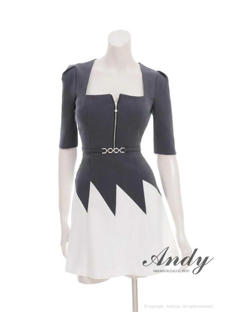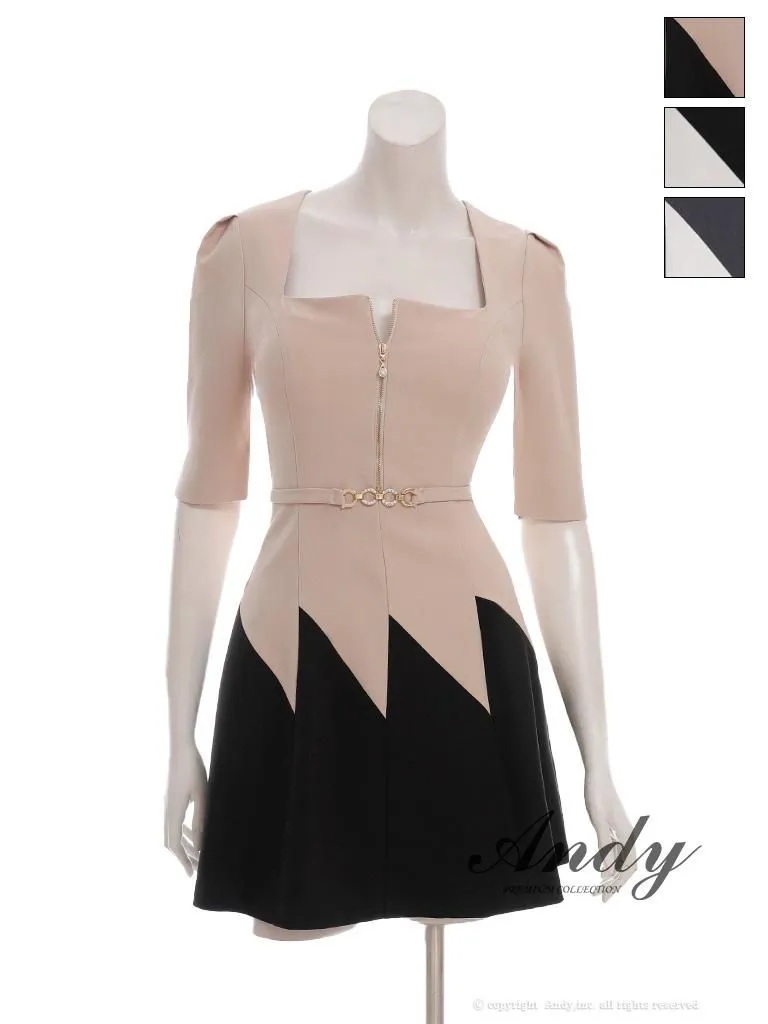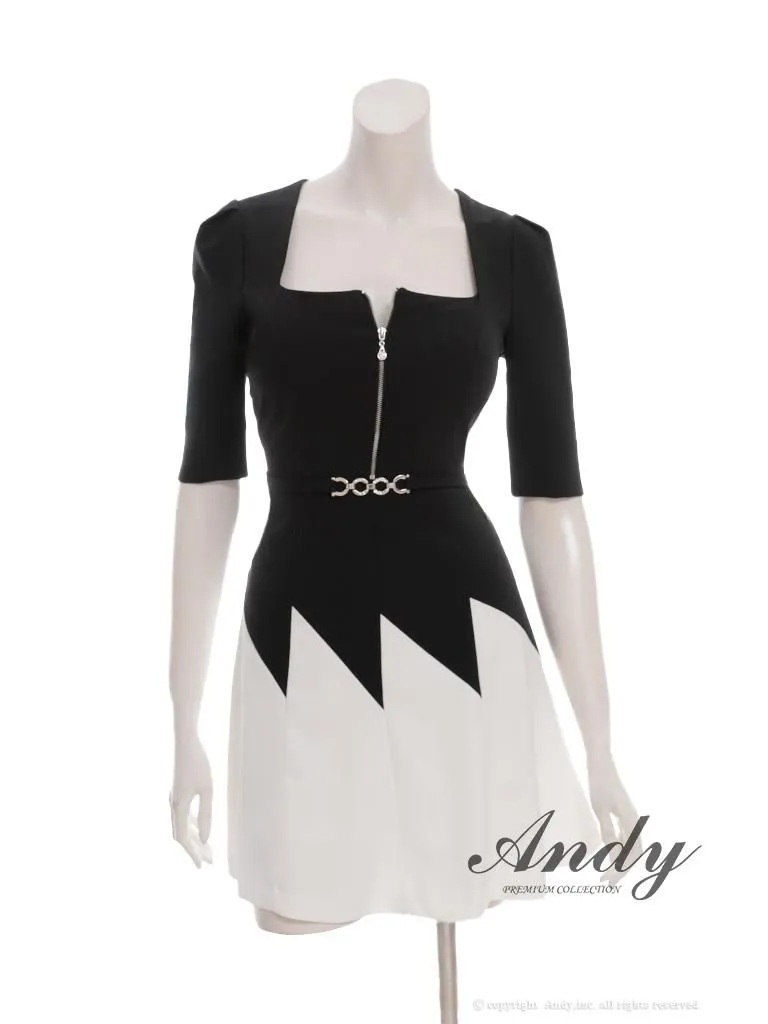 XSサイズあり【ANDY/アンディ】スクエアネック/ バイカラー/ バストジップ/ ハーフスリーブ/ 袖あり/ フレア/ ミニドレス/ キャバドレス[OF05] [OK3006-BxW-2510]