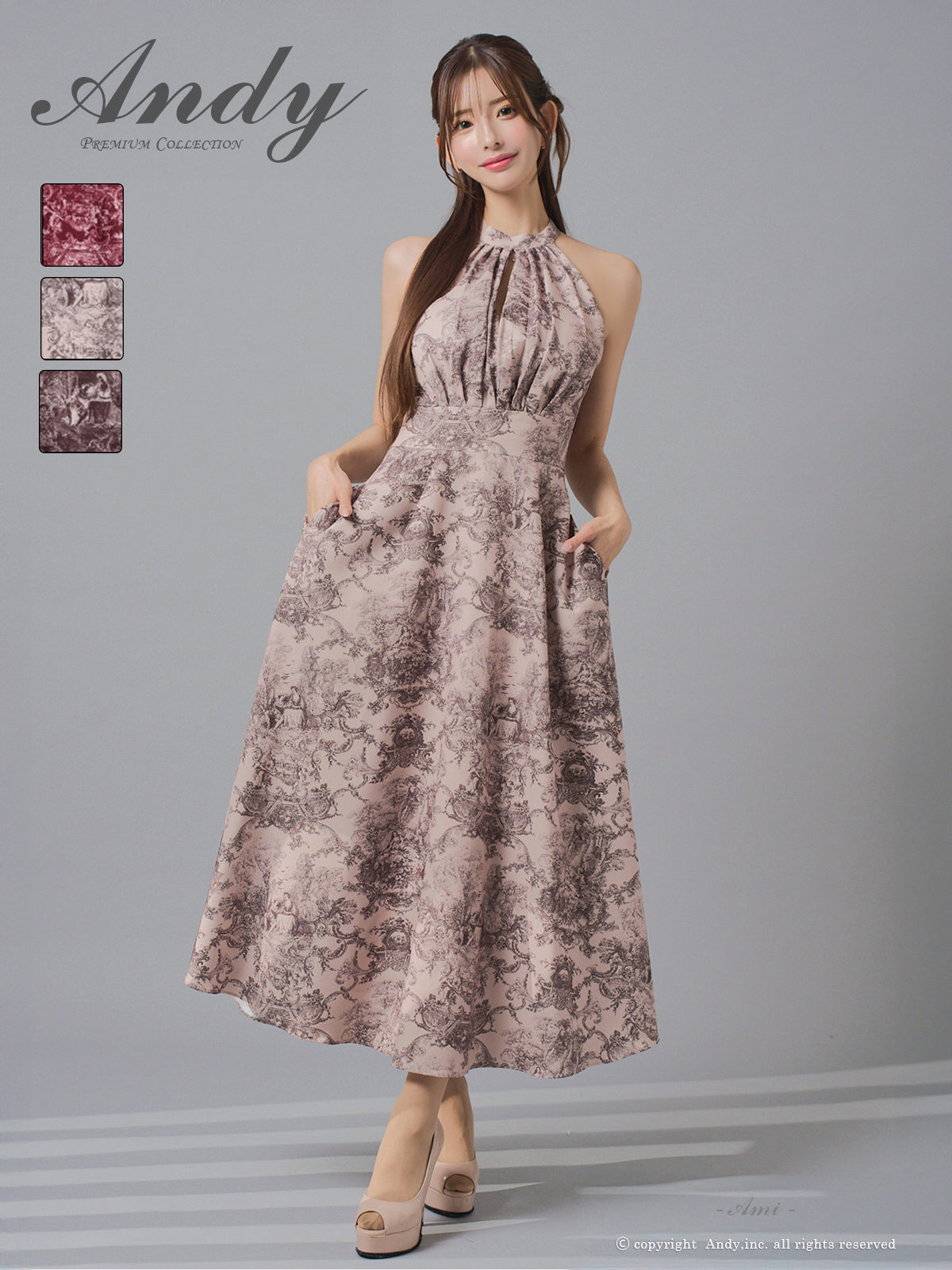 XSサイズあり【ANDY/アンディ】アメリカンスリーブ/ クラシカルプリント/ ハイウエスト切り替え/ シフォン/ フレア/ ロングドレス/ ワンピース/ キャバドレス[OF05] [ON3016-WR-2510]