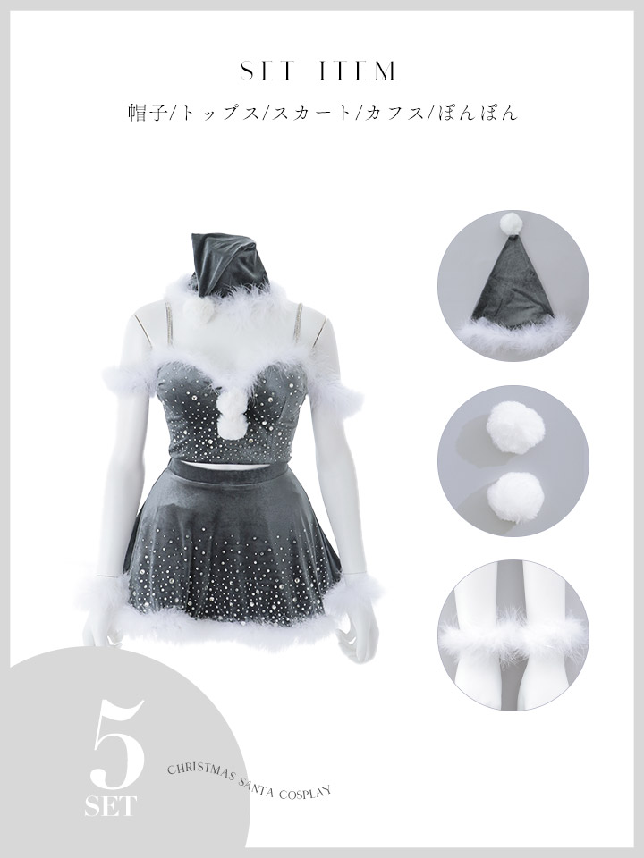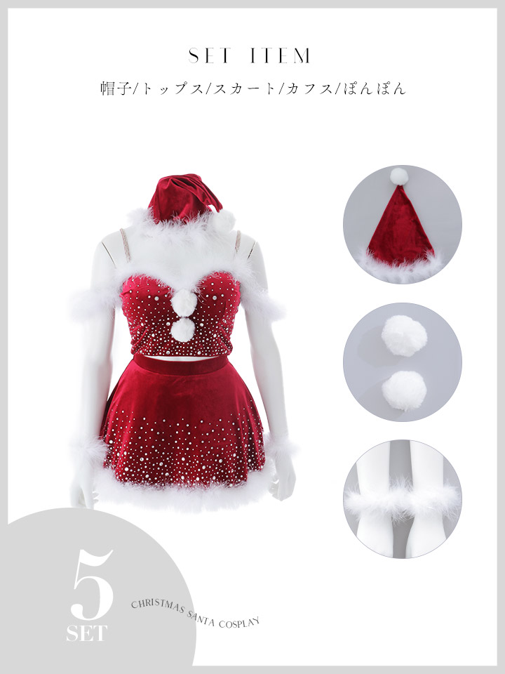 【ノベルティ】【予約 / 10月下旬発送予定】【送料無料!】【サンタ】スノービジューセットアップサンタコスプレ【コスプレ5点セット】【XS-Lサイズ/3カラー】[OF03] [SS-164-YN-dzw-B-25AS]