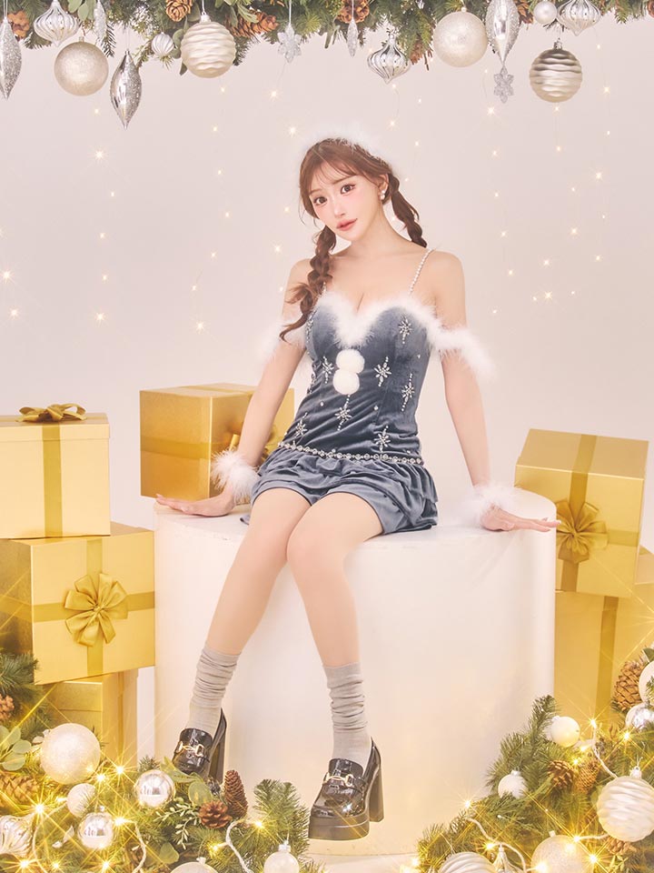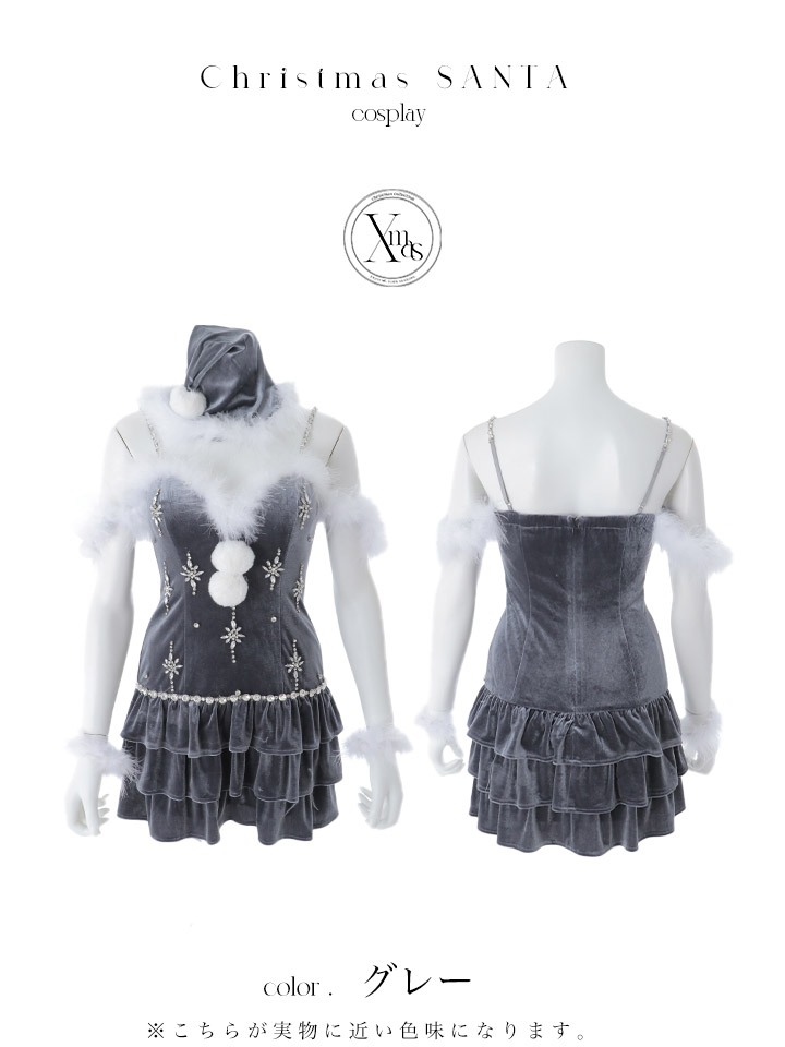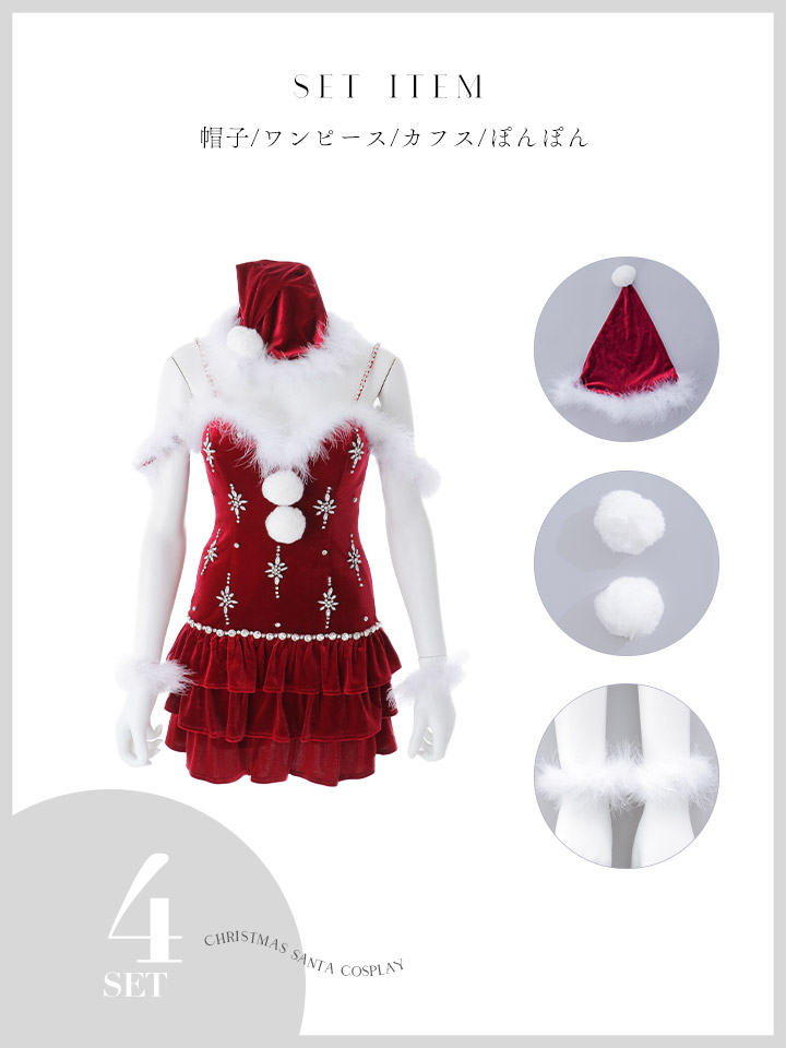 【ノベルティ】【予約 / 11月上旬発送予定】【送料無料!】【サンタ】 スノーフレークビジューフレアサンタコスプレ【コスプレ4点セット】【XS-Lサイズ/3カラー】[OF03] [SS-195-SB-dzw-B-25AS]