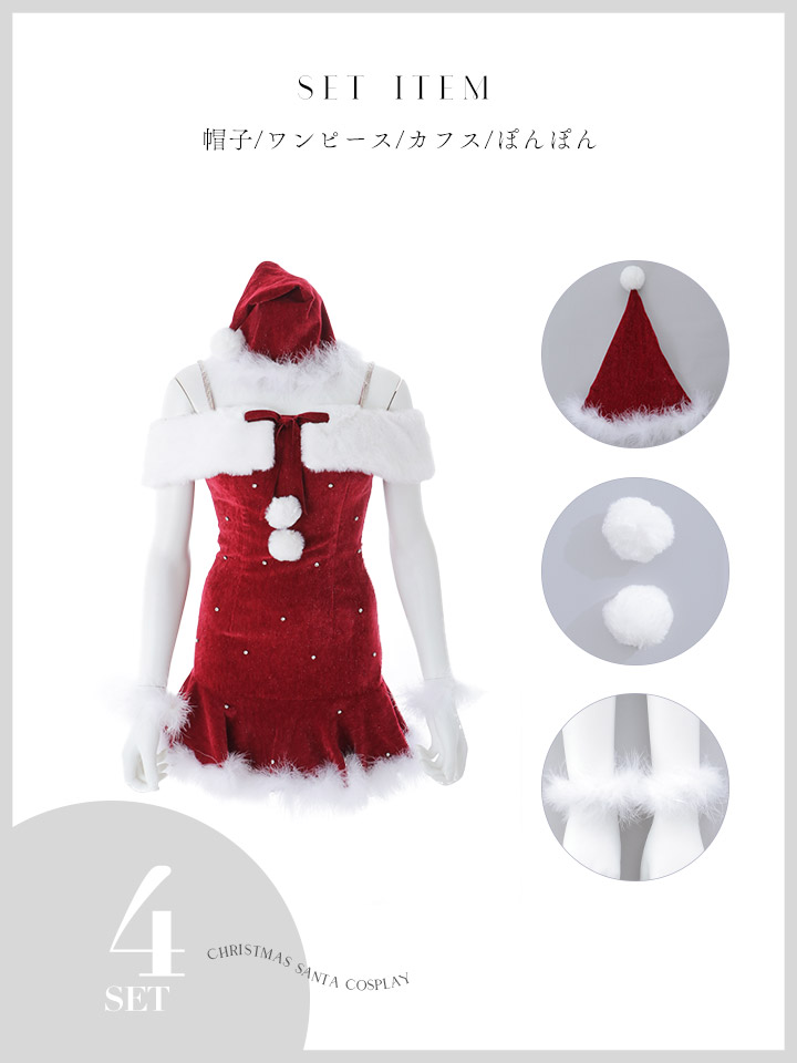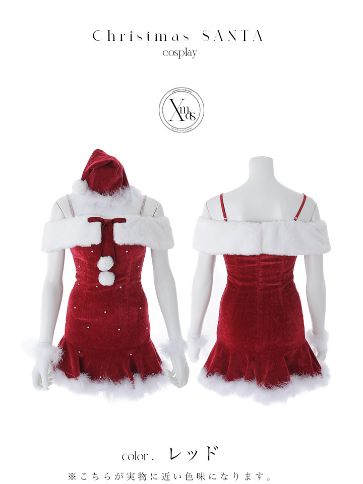 【ノベルティ対象】【即日発送】【サンタ】オフショルファービジューマーメイドサンタコスプレ【コスプレ4点セット】【XS-Lサイズ/2カラー】[OF03] [SS-173-YN-dzw-R-25AS]