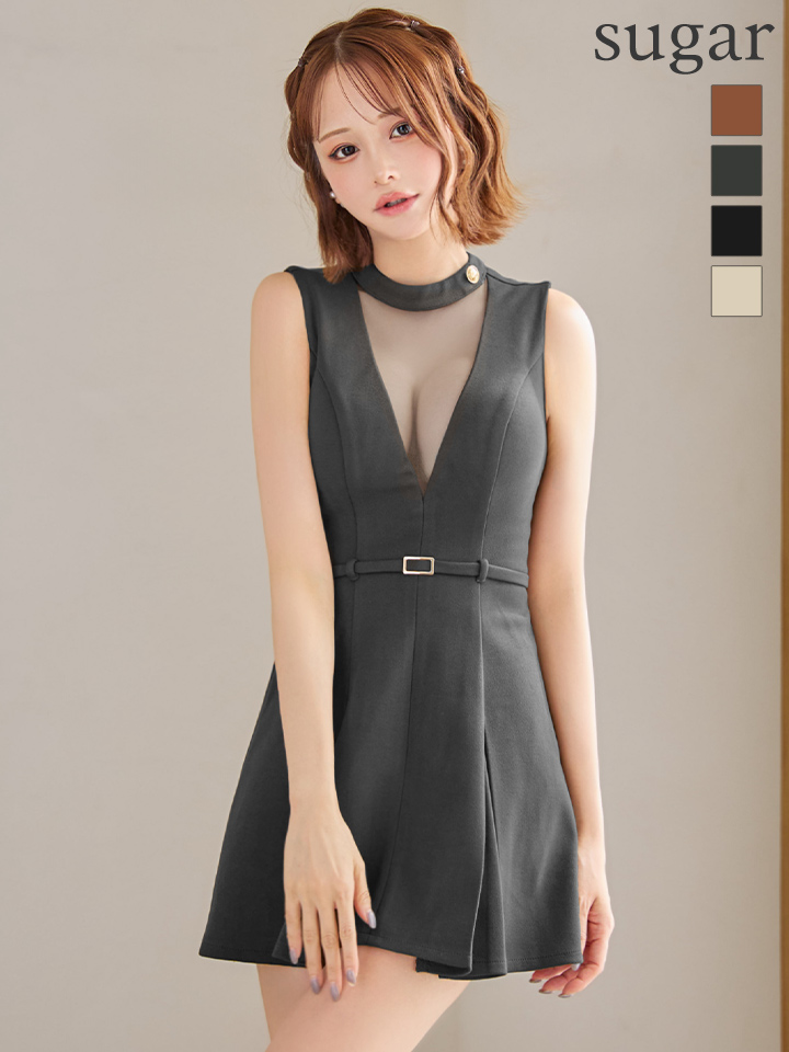 【予約商品/10月中旬発送予定】XSサイズあり【Glossy/グロッシー】チュール/ メルトン/ ホルター/ ベルト/ フレア/ ミニドレス/ キャバドレス[OF08] [GL3957-IV-S251014]