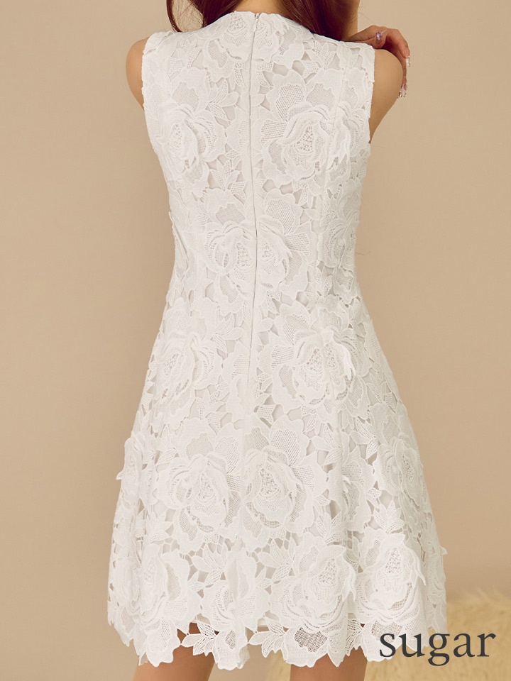 XS-Lサイズあり【ERUKEI エルケイ】フラワーレース/ 総レース/ ノースリーブ/ Vネック/ フレア/ Aライン/ ワンピース/ ミニドレス/ キャバドレス[OF2] [LKE25188-W-S2510]