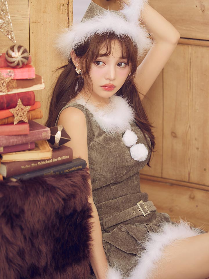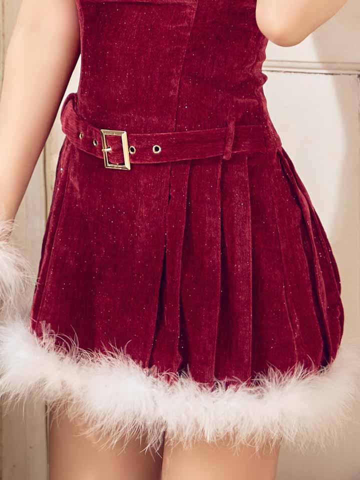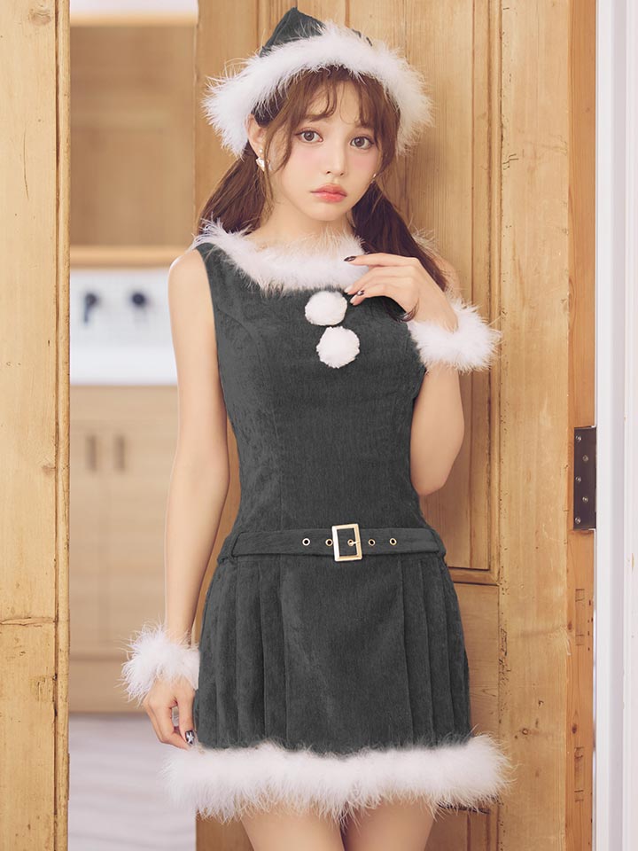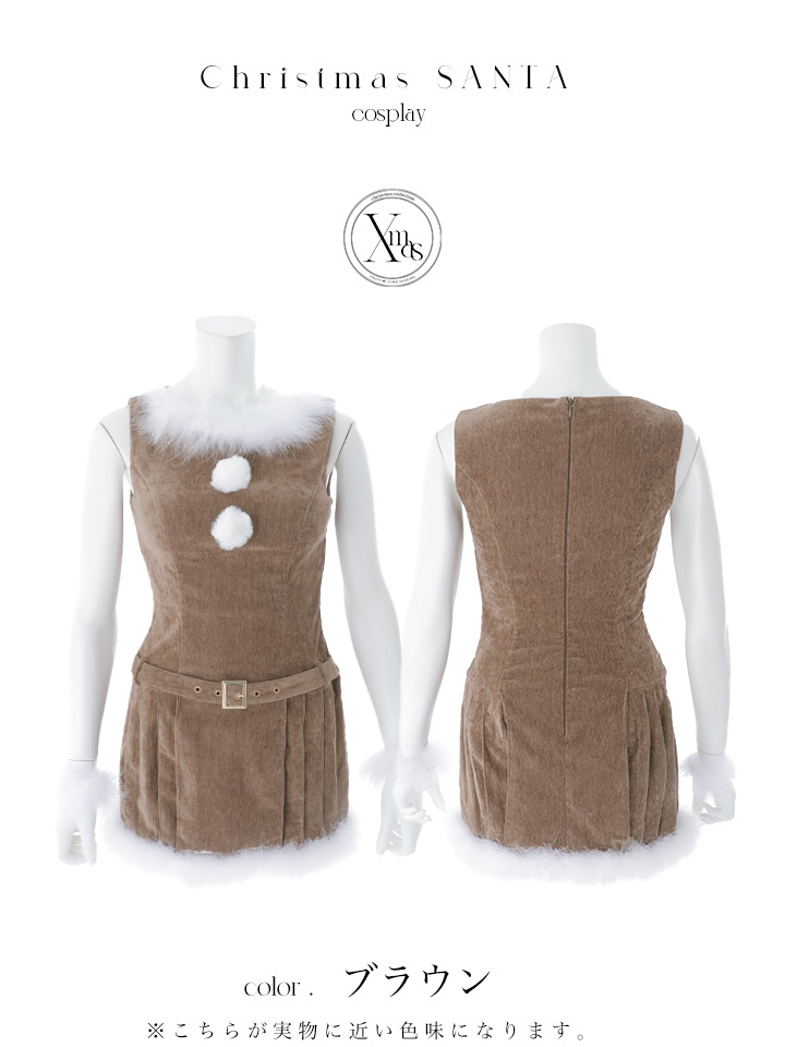 【即日発送】【サンタ】ベルト付きファーサンタコスプレ【コスプレ4点セット】[OF01/OF04] [SS-208-YN-dzw-BR-25MY]